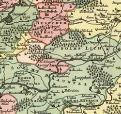 In 1541/2 abbey and secular lord were able to resolve differences about practices at the abbey with an agreement that gave the lords considerable influence over finance, administration and even the day-to-day life of the monks. However, in 1562 Graf Reinhard died and the line of Solms-Hohensolms-Lich now joined the Reformation and tried to change the abbey and environment. Although some members of the reform order joined this movement, it engendered opposition from the powerful Archbishop of Mainz. At the election of a new abbot in May 1574 the Solms family and Mainz both denied the other side's right to send a delegation. The Solms family claimed sovereignty over the abbey, which insisted that it enjoyed imperial immediacy (Reichsunmittelbarkeit) and was therefore free from any other authority than the Emperor. Although the Aulic Council at Vienna ruled in favour of the abbey in 1715, the Solms objected and the proceedings continued to drag on for decades, without having been resolved in 1803 when the abbey was dissolved.[13][14]