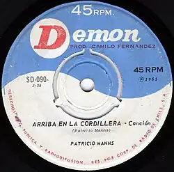11. ^ "Arriba en la cordillera/Ya no canto tu nombre (Patricio Manns) [1965]". Cancioneros - Diario Digital de Música de Autor. Retrieved 12 May 2021.
