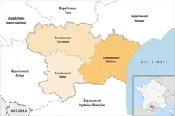 - 27 communes from the arrondissement of Carcassonne to the arrondissement of Narbonne