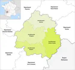 The borders of the arrondissements of Dordogne were modified in January 2017:[3]