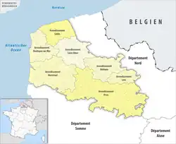 The 7 arrondissements of the Pas-de-Calais department are:[1]