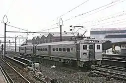 The Arrow IIIs were built in 1977 and 1978 by General Electric[7] in the same fashion as the Arrow IIs. They consist of 200 cars built as married pairs (1334–1533) and 30 single cars (1304–1333).[2] These cars were initially ordered as part of a plan to rehabilitate the NJDOT (Later NJ Transit's) Hoboken division, converting the 3,000 volt DC system to a 25 Kv 60 Hz AC system. However, due to the retirement of the Arrow I MUs, and the Arrow IIs frequently being leased to Amtrak and MARC, as well as delays to the rehabilitation of the Hoboken electrification, the Arrow IIIs were assigned to the former Penn Central electrified lines instead.[2] As a result, the Arrow IIs and only a portion of the Arrow III fleet were devoted to the Hoboken division when the electrification work was finally finished in 1984, with the remaining Arrow IIIs being assigned as the only MUs in service on the Northeast Corridor and North Jersey Coast Line.[2] Due to the lack of an automatic transformer tap changer, the Arrow IIIs cannot switch between line voltages while in service. To prevent confusion, a triangular orange sticker is affixed under the front window of each car, with the current voltage the unit is set to: "12K" for the Newark Division and "25K" for the Hoboken Division. After the North Jersey Coast Line was changed to 25 kV south of Matawan, MU service to Long Branch was replaced by push-pull trainsets only.