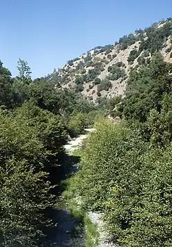Arroyo Hondo is a northwestward-flowing 13-mile-long (20.9 km)[2] river in Santa Clara County, California, United States, that lies east of Milpitas.[1] The area is privately owned by the San Francisco Water Department and is closed to public access because of its usage as drinking water. Bounded to the east by Oak Ridge and to the west by Poverty Ridge, Arroyo Hondo empties into the Calaveras Reservoir where it joins Calaveras Creek. It is formed by the confluence of Smith Creek and Isabel Creek which drain the west and east slopes of Mount Hamilton, respectively.