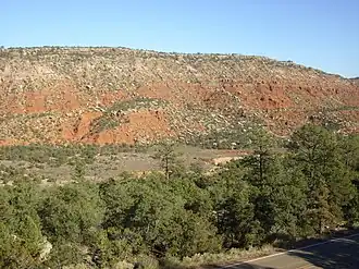 The formation is 58% siltstone and 34% sandstone, with minor conglomerate and calcrete (each about 4%). The siltstone beds also contain numerous calcrete nodules, and they form thick slopes between thin sandstone sheets. The sandstone sheets themselves are coarse, arkosic, and trough crossbedded. The minor conglomerate beds are mostly composed of intraformational calcrete clasts, but conglomerate beds containing extraformational quartzite clasts are more common in the upper part of the formation. The formation is well exposed in the walls of El Cobre Canyon and in the valley of the Rio Puerco.[1]