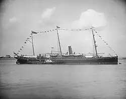 According to his application for naturalisation as a United States citizen, Brown arrived in New York on the City of Chicago on 10 March 1892. The ship had sailed from England and therefore for this to be true Brown must have sailed from Australia to England at the earliest opportunity in February. It is possible that he used an assumed name on these voyages. The date of his arrival in New York, if he was on the City of Chicago, would have either been 25 March at the earliest or possibly 22 April 1892. The ship sailed on the Liverpool to New York route, taking 8 or 9 days to cross the Atlantic.[27] The earliest ship he could have caught from Sydney was a P&O ship RMS Oriental that sailed on 8 February via Suez and arrived in London on 20 March, which was about 3 days after the City of Chicago's March departure. This would make 22 April the more likely date with a number of alternative ships he could have sailed from Australia on.[28] Australian newspapers of 22 February based on New Zealand reports about letters that had been received there said he was staying in Sydney.[29] The City of Chicago ran aground and sank at Greenland on 22 June 1892.[30]