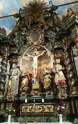 The Articular church in Kežmarok (Slovak: Artikulárny kostol v Kežmarku) is a wooden church in Kežmarok, Slovakia. The local Lutherans built it following a period of religious persecution, when in 1681 the Congress of Sopron permitted Lutherans, in articles 26 and 27 of an agreement, to erect two churches in each of eleven counties of the Kingdom of Hungary, nine of which are in present-day Slovakia. The churchers were to be made of the cheapest possible materials - this meant wood; even nails were made exclusively of wood.[1] The construction was financially supported by Protestants from various countries, including Sweden and Denmark.[2]