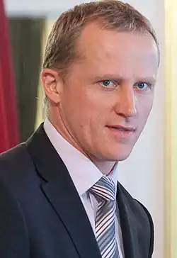 Artis Ābols (born January 3, 1973) is a Latvian former professional ice hockey forward and coach. He is the current head coach of HK Zemgale/LLU of the Latvian Hockey Higher League, as well as an assistant coach of the Latvia men's national ice hockey team.[1] His son, Rodrigo Ābols, is also an ice hockey player and was selected by the Vancouver Canucks in the 2016 NHL Entry Draft.