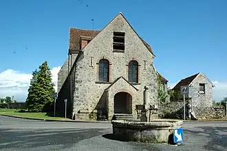 are registered as an historical monument.[8] The earliest parts date back to the 15th century but it has been rebuilt over the centuries. This church has no proper tower but rather a bell housed in a Dormer of the north side of the roof over the nave. The church has been the subject of a complete restoration and was returned to the Church during a Mass celebrated by Friar Gandon, the parish priest of Our Lady of the Three Valleys on which it depends, and Bishop Giraud, Bishop of Soissons in 2009. The Churtch contains a Stained glass window: Christ on the Cross (16th century)