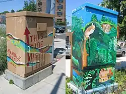 • Throughout various parts of the city, electrical boxes are painted as a beautification of the city. There are 190 large grey electrical boxes on street corners in the town. In 1993, the Springdale Neighborhood Association commissioned a local artist to paint the boxes in the section of town to "brighten" up the eyesores. The trend caught on and over 100 boxes have been painted by artists throughout the city.
