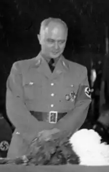 After the Nazi seizure of power, Görlitzer was appointed Deputy Gauleiter of Gau Berlin on March 13, 1933, where he served under Gauleiter Joseph Goebbels.[2] On July 11, 1933, Görlitzer was named to the recently reconstituted Prussian State Council by Prussian Minister President Hermann Göring.[3] At the November 1933 German parliamentary election, he was elected to the Reichstag from electoral constituency 2 (Berlin). He would be reelected in 1936 and 1938 for constituency 3 (Berlin-East), serving until the end of the Nazi regime.[4] On July 20, 1934, he also became a Berlin City Councillor. A member of the Nazi paramilitary organization, the Sturmabteilung (SA), Görlitzer attained the rank of SA-Gruppenführer on November 9, 1938. From 1941, he was the director and manager of the Deutschlandhalle and a supervisory board member of the Deutsche Revisions und Treuhand AG auditing office.