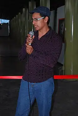 He has participated in various civil and cultural associations dedicated to the promotion of art. This participation included relief efforts for Japanese orphans after the 2011 Tōhoku earthquake and tsunami participating in the "¡Amor a Japón!, Venta de Arte para ayudar a los huérfanos del Sismo-Tsunami de Tohoku" in June 2011 at the Conejoblanco Galería de Libros sponsored by the Fundación Paisaje social AC.[8] He is a founding member of the Expresión Urbana Popular (EXUPO) to promote art among youth.[1][3]