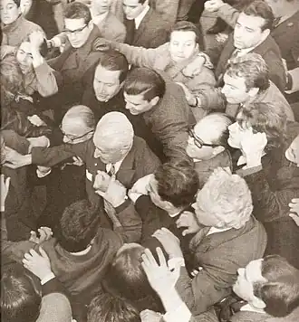The UCR had been divided since their contentious 1956 convention into the mainstream "People's UCR" (UCRP) and the center-left UCRI. The leader of the UCRP, Ricardo Balbín, withdrew his name from the March 10 nominating convention and instead supported a less conservative, less anti-Peronist choice, and the party nominated Dr. Illia for president and Entre Ríos Province lawyer Carlos Perette as his running-mate.[8]