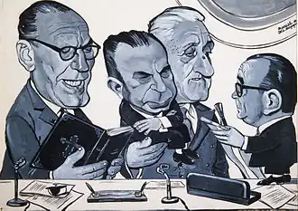 In this climate of democratic fragility, the press mounted an active campaign that contributed to the military coup. They accused the president of being slow and ineffective, they represented him as a turtle or with a dove on his head; at the same time they argued that modernization required overcoming Argentina's fractious Congress and portrayed Juan Carlos Onganía as a messianic leader who would bring order.[30]