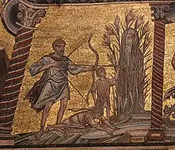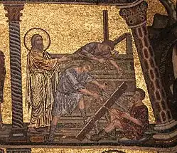 He painted a Madonna and Child on a gold background for the chapel at palazzo Gianturco in Naples and also painted frescoes on the chapel walls of Christ in Glory with Angels. Inspired by the Neapolitan painter Francesco Paolo Michetti, in 1895 he produced Vita, now in the Galleria nazionale d'arte moderna e contemporanea in Rome. Later attracted by symbolist themes, he simplified his pictorial representations to concentrate on figures and eliminate unnecessary details - examples of this are his Calvary and Purgatory. He also decorated the San Lorenzo chapel in Rome's San Paolo fuori le mura before painting frescoes for the same basilica's quadriportico.[4]