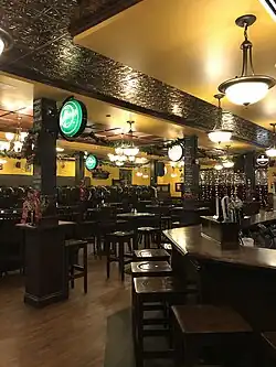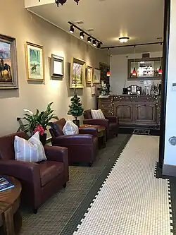 After a $3.5 million renovation, The Celtic Cowboy pub and restaurant opened three months late in November 2013. The Darkhorse Hall and Darkhorse Wine Snug, in the basement of the structure, opened on October 31, 2014 (a year late). The hall and snug featured a wine bar, private lockers which patrons could lease to store wine, and a meeting and banquet space. Work continued in November 2014 on the boutique hotel, which opened in September 2015 (two years late).[15] The Darkhouse Wine Club, a subscription-based service of the Darkhorse Wine Snug, also opened .[16][17]