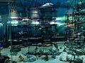 The warm and cold water exhibits at the aquarium (a total of 45 tanks containing 720 cubic metres (190,000 US gal) of water) feature marine animals such as sea otters, sea lions, seals, penguins, and dolphins.[4] The dolphin show tank is the largest in the facility and holds 703 cubic metres (186,000 US gal).[5][1] The seawater tank on the first floor includes a 15-metre (49 ft) acrylic tunnel for viewing the inhabitants from underneath.[6]