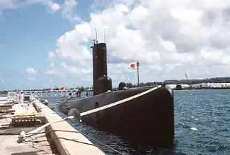 The first submarine Asashio was ordered as part of the 1963 shipbuilding programme.[2] Construction was split between the Kawasaki and Mitsubishi yards at Kobe. The submarines were used for ASW training for surface ships in naval exercises. The class was deleted in the mid-1980s.[1][4]