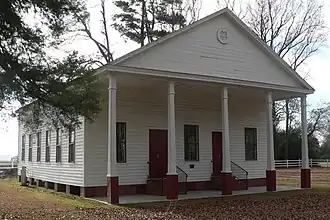 Asbury Methodist Church, also known as Asbury Memorial Church and Asbury Methodist Episcopal Church South, is a historic Methodist church located at Raynham, Robeson County, North Carolina. It was built in 1861, and is a one-story, timber-frame building in a modest Greek Revival style. It measures approximately 40 feet by 50 feet and features a prominent, projecting, pedimented front gable supported by five posts. Adjacent to the church is the contributing cemetery with approximately 200 marked graves. The oldest grave dates to 1848.[2]