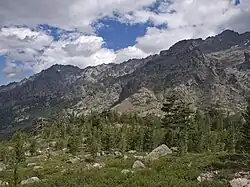 Asco offers a range of extremely rich and varied landscapes of bare rocky mountains in the Gorges of Asco, almost impenetrable scrub above the gorges, and dry and arid with a forest of prickly juniper in the vicinity of the village with thick forests of black pine above the village. Below the ridge lines thick and aromatic Alder bushes grow[6] called u bassu in Corsican: an endemic shrub without a trunk. The remarkable Asco communal forest that covers the upper valley includes the Forest of Vecchietto and the Forest of Carrozzica, which are larger and higher, but both on the Asco slopes. These landscapes are similar to high alpine valleys. The presence of a ski resort (now closed) only reinforces the illusion.