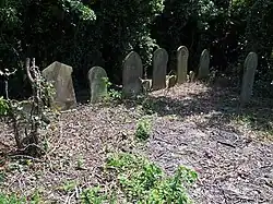![]() The site of the former Church of St Swithin, Asgarby Gravestones dedicated to members of the Hall family. | |