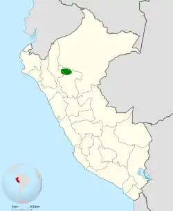 The ash-throated antwren is known only from the watershed of the Río Mayo in the northern Peruvian Department of San Martín. It inhabits a variety of wooded landscapes including tall humid montane forest, mid-height semi-stunted forest, and very low stunted forest, many of them on sandy soil. In elevation it occurs in the narrow range of 1,250 to 1,450 m (4,100 to 4,800 ft).[8][9]