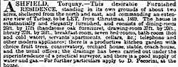 The advertisement for Ashfield that Mrs Brown placed in the newspaper in 1880 is shown. It describes the many rooms of the house and gives an outline of the garden with its beautiful trees and fine views.[4]