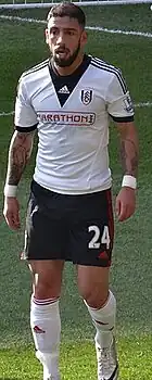 Dejagah played his first game of the season for Fulham in a League Cup win over Burton Albion, and started his first league match of the season against Manchester United on 2 November. On 4 December, Dejagah scored his first goal for Fulham against Tottenham Hotspur in René Meulensteen's first game as manager.[16] On 14 January, Dejagah scored a goal and provided an assist to Darren Bent in an FA Cup match against Norwich City.[17] On 22 February, Dejagah scored at West Bromwich Albion in his manager's first game again, this time being Felix Magath, his former coach at Wolfsburg.[18] On 15 March, Dejagah scored the winner against Newcastle United, eight minutes after coming on as a substitute, for his fourth Fulham goal.[19] On 30 March, he scored a similar goal against Everton, cutting into his right foot and shooting from outside the 18-yard box.[20][21] He was named the man of the match after scoring a goal against Hull City on 26 April.[22] Dejagah was voted by fans as Fulham's player of the year at the end of the season.[23]