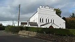 The Roman Catholic chapel of Our Lady and St John [1] is not far from St John the Baptist. The church and rectory are just one building with a hint of gothic-like adornments on a colour washed stucco. The chapel was designed by the same architect priest, Fr James Egan, as Holy Trinity Church in Newcastle-under-Lyme.[2]