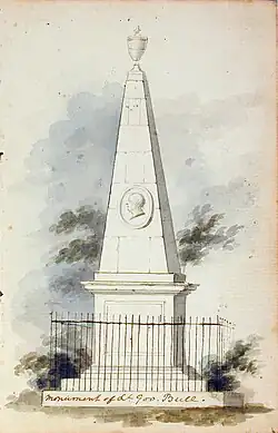 In 1704, Bull's son, William Bull, built a two-story brick Georgian plantation house; an Italianate garden and open park was added to the property later in the 18th century.[3][2][4] He added 500 acres (200 ha) to the plantation in 1707.[4] William Buill became the colony's governor in November 1737.[4] Around 1791, the governor's widow installed a stone obelisk monument to honor her late husband.[2][4]