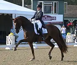 Ashley Holzer (née Nicoll; born 10 October 1963) is a Canadian-born equestrian specializing in dressage, who has been representing the United States since 2017.[1] She was born in Toronto, the daughter of Moreen and Ian Nicoll,[2] and is married to Charles Holzer. Representing Canada, she won a bronze medal in team dressage at the 1988 Summer Olympics in Seoul, together with teammates Cynthia Neale-Ishoy, Eva Pracht and Gina Smith. She also competed at the 2004, 2008 and 2012 Summer Olympics.[3]