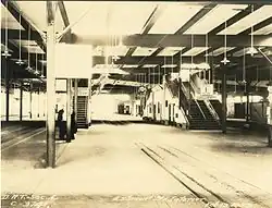 The first Ashmont station was a simple building along the original Shawmut Branch of the Old Colony Railroad, which opened in 1872. Service on the branch ended in 1926 as the Boston Elevated Railway constructed its Dorchester Extension. Ashmont and Shawmut stations opened on September 1, 1928, with Ashmont the terminal station.[5] Like Fields Corner, Ashmont was designed for convenient transfer between rapid transit trains and surface streetcars. It had two island platforms with rapid transit on the inner tracks and streetcars on the outer tracks, allowing cross-platform transfers in both directions. Several streetcar lines were replaced with buses shortly after the station opened, using a surface-level busway on the west side of the station.[5]
