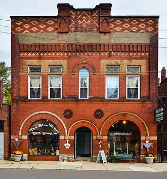 Most of the buildings in the district were constructed between 1865 and 1878, although occasional buildings were erected in the early 1900s. The district's area has long been commercial; from its earliest years, the street running through the district was known as Bridge Street, because it terminates at a bridge spanning the Ashtabula River. Until it became part of the city of Ashtabula in the 1870s, Ashtabula Harbor was a separate municipality (it lies two miles north of the city's downtown), and Bridge Street its commercial sector.[2] The area's buildings vary greatly in appearance, with some surpassing others by several feet.[3] Designs include examples of the Italianate, Queen Anne,[2] and Neoclassical styles,[1] while the construction materials are primarily brick with occasional frame structures.[2]