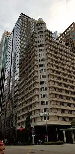 The former Asia Insurance Building (Chinese: 亚洲保险大厦; pinyin: Yàzhōu Bǎoxiǎn dàshà), now named Ascott Raffles Place, lies in the heart of the Central Business District of Singapore, at the corner of Finlayson Green and Raffles Quay. Standing at 270 feet (82 metres), it surpassed the Cathay Building to be the tallest tower in Singapore until the completion of Meritus Mandarin Tower 1 in 1971. Designed by one of Singapore's pioneer architects, Ng Keng Siang, the office building was completed in 1955 and served as the headquarters for the Asia Insurance Company, one of the first local insurance companies. In 2006, the building was acquired by the Ascott Group and the office tower has since been refurbished into a serviced apartment residence. Renamed as Ascott Raffles Place, the building sits on a 999-year leasehold site with a building footprint of about 950 square meters.[1]