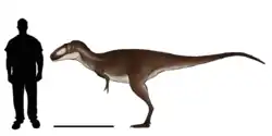 Asiatyrannus (meaning "Asian tyrant") is an extinct genus of tyrannosaurine theropod dinosaurs from the Late Cretaceous Nanxiong Formation of China. The genus contains a single species, A. xui, known from a single specimen consisting of a skull and partial postcranial skeleton. Asiatyrannus is notable for its deep-snouted skull and small body size, in contrast to the gracile snout and larger size of the contemporary Qianzhousaurus. It represents the southernmost record of an Asian tyrannosaurid.[2]