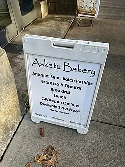 Askatu has been a vendor at the farmers' market in the University District.[6] According to the Seattle Metropolitan, Askatu is "EnviroStars-certified, a City of Seattle program that recognizes green businesses and provides free sustainability tools and resources".[10][17] The bakery is part of the Intentionalist network, which seeks to increase awareness of minority-owned small businesses in the region.[4][18]
