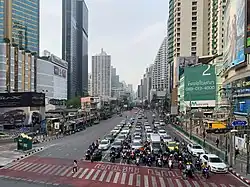 Asok Montri Road, or Soi Sukhumvit 21 (also Asoke Montri Road, Thai: ถนนอโศกมนตรี, RTGS: Thanon Asok Montri, pronounced [tʰā.nǒn ʔā.sòːk mōn.trīː]), is a major road in Bangkok, Thailand. It is often referred to as simply Asok or Asoke. It runs north from Sukhuvmit Road and forms part of the Ratchadaphisek inner ring road. It contains many offices buildings and shops. Although the road has a capacity of 35,000, more than 100,000 vehicles use the road daily, causing major congestion.[1] The junction of Sukhuvmit Road and Asok Montri Road is a major road junction known as Asok Intersection, and is also the location of Asok BTS station and Sukhumvit MRT station. In 2013 there were plans to build an elevated highway[2] but as of 2019 construction has not started.