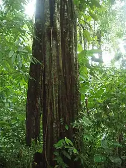 The tree has a distinctly channelled trunk and is known to grow 50 metres (160 ft) high.[2]