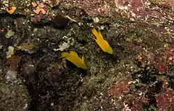 Assessor flavissimus, the yellow devilfish or yellow scissortail, is a fish from the western Central Pacific, recorded from the Great Barrier Reef and Papua New Guinea.[2] It occasionally makes its way into the aquarium trade. It grows to a size of 5.5 cm (2.2 in) in length.[3] It is bright yellow in colour and has a reddish-orange stripe running from the eye to the upper edge of the operculum, and a reddish-orange band on the dorsal and anal fins which is parallel to the fin margin. This species feeds on plankton and forms small groups under overhangs and ledges and in crevices, often swimming upside down. The males mouthbrood, guarding the eggs in their mouths.[4]