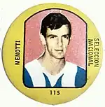 In 1967, "Figuritas Sport" collection introduced players' caricatures for the first time in Argentina. Those were drawn by artist Jorge de los Ríos (who was also the artist of children magazine Anteojito for the most part of its run).[9] De los Ríos' depictions of players would become a classic in football cards during the 1960s, 1970s and 1980s.[10] The breakthrough in Argentine card industry came in 1970 when the first metallic circular cards began to be marketed in the "Chapitas" album. They were promoted as "El golazo del año" ("Goal of the year").[11]