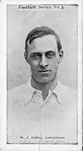 The earliest documented cigarette football card appears to be issued from a cigarette brand called Field Favorites depicting Duncan MacLean of Liverpool F.C.[4] However, the earliest cigarette association football cards from a known set are Billy Bassett and Charlie Athersmith from Godfrey and Phillips “General Interest” in 1896.[5]