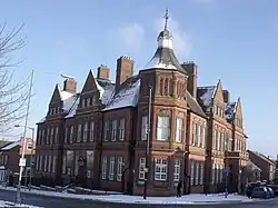 In 1911 the civil parish had a population of 219,082.[5] On 1 April 1912 the parish was abolished and merged with Birmingham.[6] Old buildings which became popular within Aston included the Aston Hippodrome and the Bartons Arms public house. Gospel Hall on Park Lane was opened in 1892 and demolished in the 1970s to be rebuilt at the top of Park Lane in 1979. The original hall had a seating capacity of 73. Another meeting place was the Ellen Knox Memorial Hall which was next door to the Midland Vinegar Brewery. The brewery was owned by the Midland Brewery Company was built around 1877.[7] It was located on Upper Thomas Street. The brewery was a three-storey brick building with rounded corners, semi-circular windows and a slated roof. Other industry that was located in Aston include the Premier Motor Works which produced cars during the early 20th century. The works were situated at the junction of Aston Road and Dartmouth Street. On Miller Street was a tramcar depot which had a storage capacity of 104 tramcars. It opened in 1904 latterly being operated by the City of Birmingham Tramways Company Ltd on behalf of the Urban District Council before formally passing to Birmingham Corporation Tramways on 1 January 1912.[8]