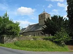 The parish church of St John the Baptist was first built in the 13th century. The current rock-faced, sandstone church has a chancel arch from that period and the blocked chamfered pointed doorway may also be from that century. The tower, on the west side of the church and built within the nave, is from the 16th century. In 1891, the church was rebuilt, retaining some of its historic features, by Nicholson and Son.[12] Including the nave and tower are a west porch and lower chancel. The windows of the church include a lancet window near the gabled porch, three trefoiled lights for the west window, ogee lights, chancel windows with 20th-century glass, and a south nave window with glass from 1890. Within the church, the lead-lined font is from 1689.[3]