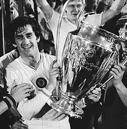 To the surprise of commentators and fans, Ron Saunders quit halfway through the 1981–82 season, with Villa in the quarter final of the European Cup. Saunders had expressed his exasperation with the board at the lack of funds available to him to strengthen the team and fell out with the chairman Ron Bendall over the terms of his contract.[43] He was replaced by his softly-spoken assistant manager Tony Barton who guided the club to a 1–0 victory over Bayern Munich in the European Cup final in Rotterdam courtesy of a Peter Withe goal in the 67th minute. Ten minutes into the final, Villa's first choice goalkeeper, Jimmy Rimmer, was injured and young substitute keeper Nigel Spink was called into action, having only made one previous appearance in the first team. Spink performed superbly, keeping a clean sheet, and helping Villa become only the fourth English club to lift the European Cup.