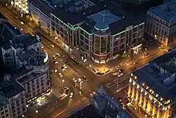Colloquially, a short section of the roads originating from the actual intersection, reachable by a few minutes of walking, can be also named Astoria (as in a neighborhood), for example "Az Astorián lakom" (I live on the Astoria) does not imply having a residence neighboring the actual intersection (which has few residential buildings), rather one near the intersection along one of the major roads.