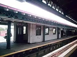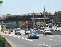As part of the 2015–2019 MTA Capital Program, the station received funding for reconstruction to make it compliant with the Americans With Disabilities Act of 1990.[21][22][23] A contract for the reconstruction was awarded in June 2018, and substantial completion was projected for November 2020.[24] In September 2018, work began adding four elevators; two connect the street and mezzanine, and two more connect the mezzanine with the platforms. In order to construct the street elevators, the station mezzanine was demolished and rebuilt. The new mezzanine was raised to reduce strikes by trucks driving underneath.[25] The station was fully closed for nine months on March 17, 2019 to allow the mezzanine to be replaced[26][27] and was reopened on December 18, 2019, while elevator construction and installation was still underway.[28][29] On July 24, 2020, the elevators were placed into operation, making the station ADA accessible.[30]