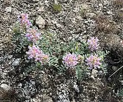 Astragalus succumbens is a perennial species of flowering plant in the legume family, commonly referred to as Columbia milkvetch.[3] Other names include the crouching milkvetch and sprawling milkvetch.[4] It is native to north-central Oregon and south-central Washington in the Columbia River valley.[5]