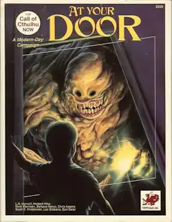 At Your Door, subtitled "A Campaign of Terror and Madness in the Days to Come", is a campaign published by Chaosium in 1990 for the horror role-playing game Call of Cthulhu, specifically for a present-day variant of the game called Cthulhu Now. Both are based on the works of H.P. Lovecraft.