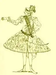 ...(in) the last act...there appears the Temple of Hymen with illuminations; there is a row of blue fires burning in order along the ascent to the temple; a fountain of fire spouts up out of the ground to the ceiling, and two more cross each other obliquely from the sides of the stage; on the top is a wheel that whirls always about, and throws out a shower of gold-colour, silver, and blue fiery rain.[2]