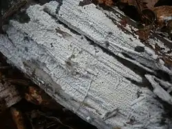 Despite its morphological simplicity, members of Atheliaceae vary widely in terms of ecological strategies. A number of species are known to be saprotrophs of needle and leaf litter, while some species of Amphinema, Byssocorticium, Piloderma, and Tylospora are ectomycorrhizal symbionts. They sometimes constitute a major component of the mycorrhizal communities.[12] Subsequently, parasitism has been observed in Athelia arachnoidea, which targets lichens.[13] Lichen formation has been suggested to occur in Athelia epiphylla, which is also associated with the white rot of Populus tremuloides.[14] A species of Athelia also engaged in a symbiotic relationship with termites of the genus Reticulitermes, in which the fungus forms sclerotia that mimic termite eggs and worker termites handling the sclerotia as if they were eggs. The presence of the sclerotia in the nest appears to enhance egg viability, while the fungus might be dispersed to new substrates.[15][16]