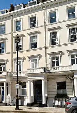 He died 17 May 1902 at his home in Lupus Street, Pimlico, from pneumonia.[83] Following a service at St Gabriel's Church his funeral was at Norwood Cemetery on 21 May 1902.[80]